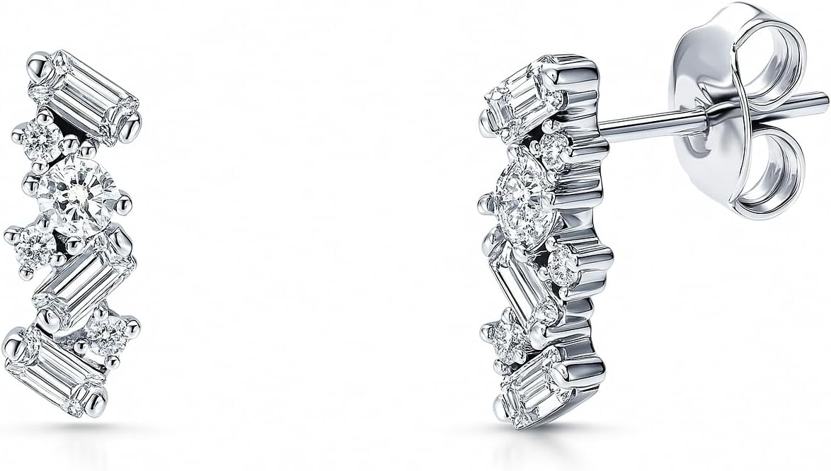 BERRICLE Sterling Silver Cluster Bar Stud Earrings for Women, Cubic Zirconia CZ
