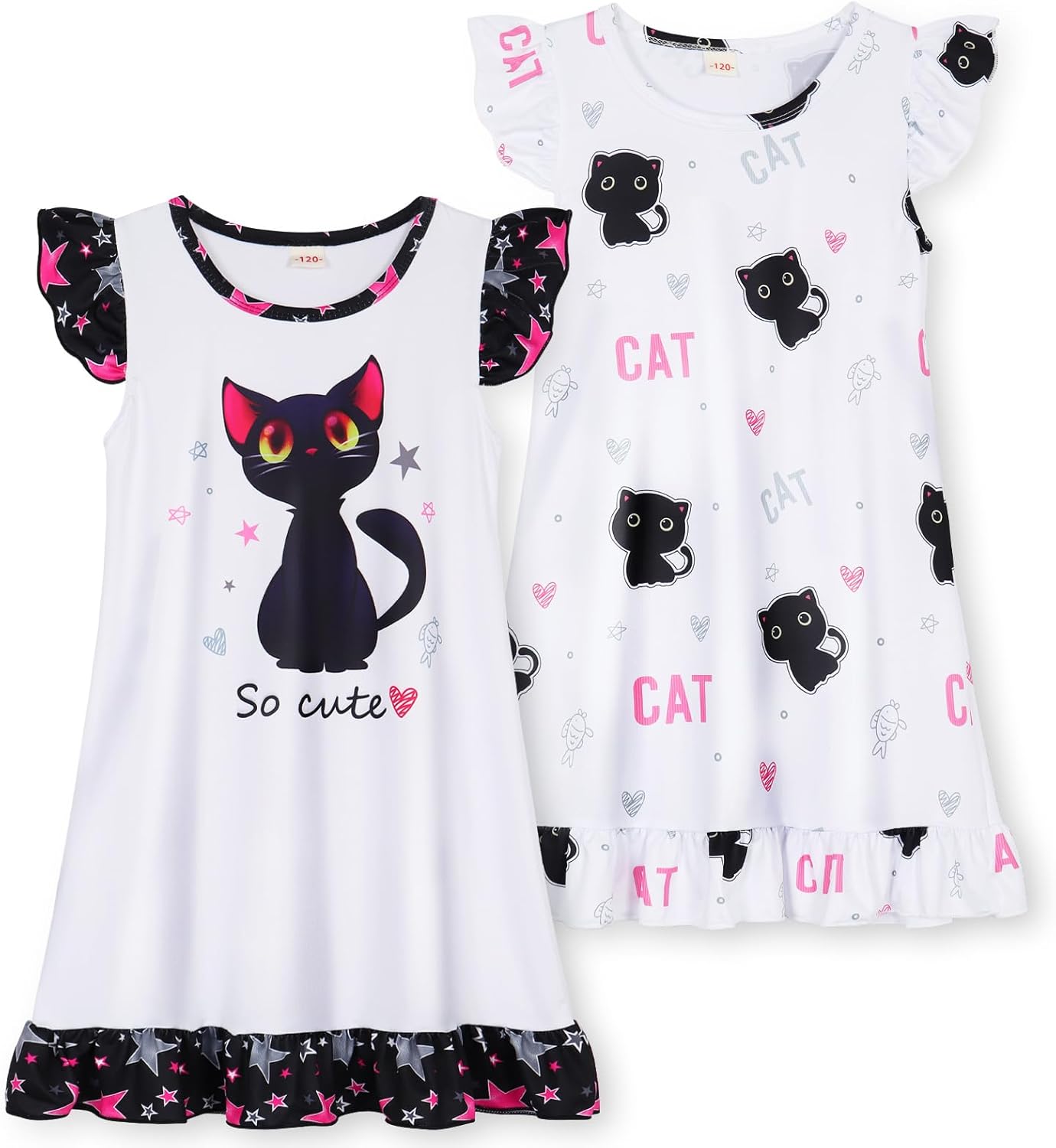 WonderBabe 2Pcs Girls Nightgowns Unicorn Pajamas Toddler Nightgown Sleepwear Flutter Short Sleeves Night Gowns for Kids