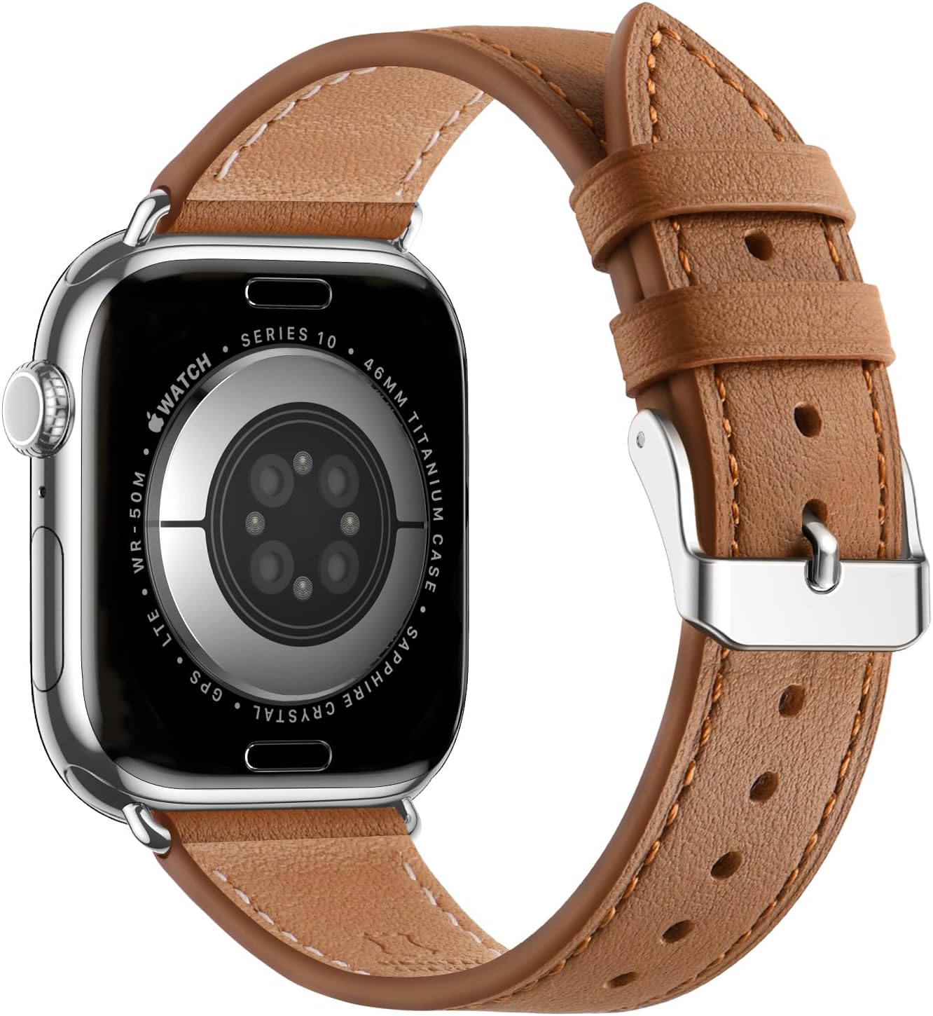 Bestig Leather Bands Compatible with Apple Watch Band 38mm 40mm 41mm 42mm(Series 10 11) for Women Men, Wristband Strap for iWatch SE3/2/1&Series 9 8 7 6 5 4 3 2 1(Brown+Silver)