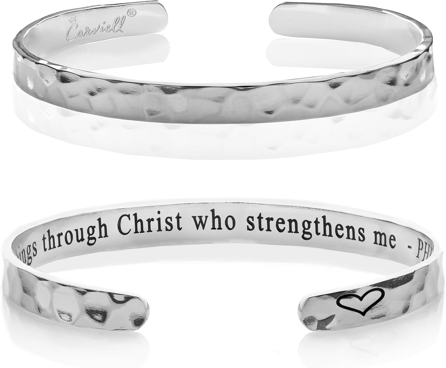 Carviell Engraved Cuff Bracelets for Women – Inspirational, Friendship, Love, Mom, Daughter, Sister, Christian, Graduation, Memorial & Wedding Gifts – 80+ Phrases – Stainless Steel, Gift-Ready