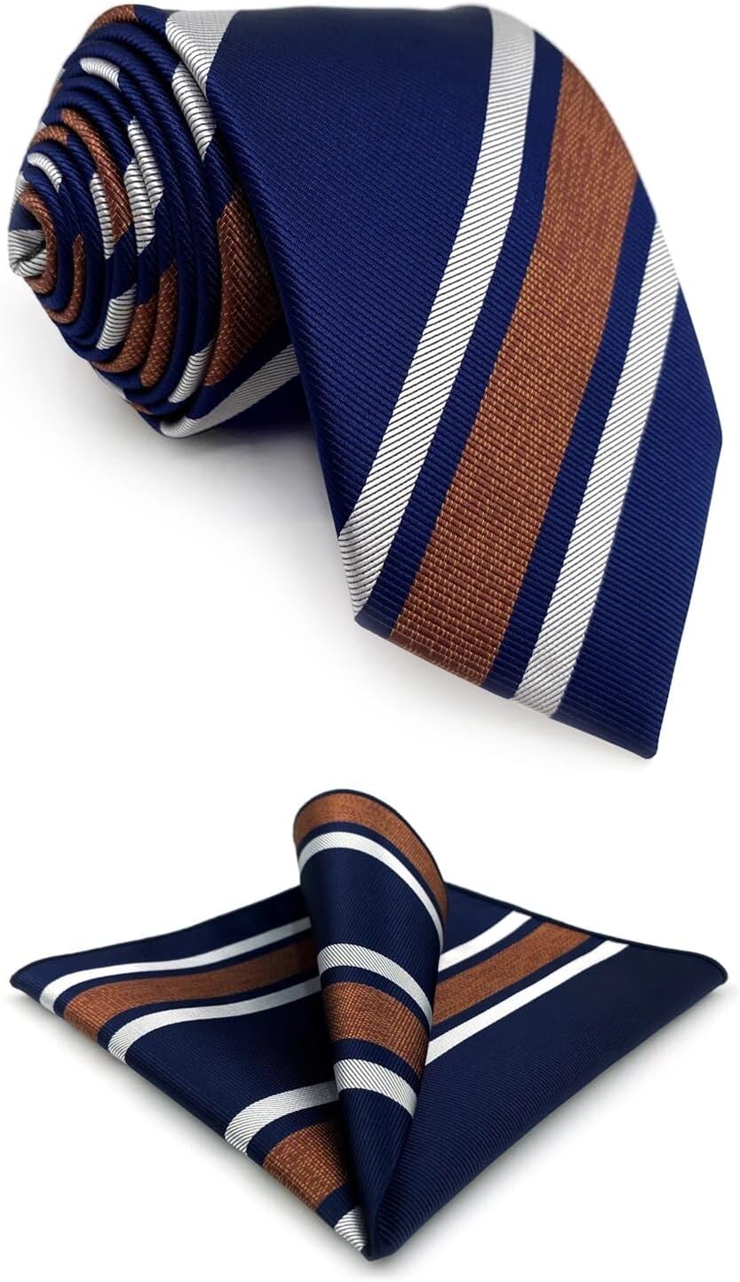 S&W SHLAX&WING Necktie Pocket Square Set Mens Ties Combo Stripes Satin Woven XL