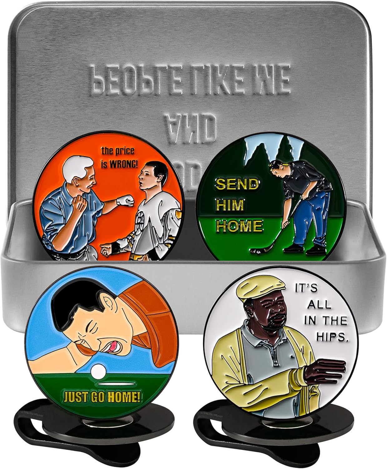 - WHAT'RE INCLUDED - Four of our best-selling WATCH collection ball markers, two strong magnetic hold silver and gold hat clips, within a funny quotes tin box gift set. This set makes the perfect gift for any golf enthusiast, whether a seasoned pro or a beginner.