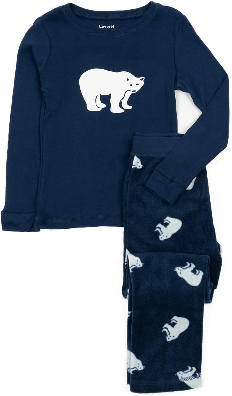 Leveret Kids & Toddler Pajamas Boys Girls 2 Piece Pjs Set Cotton Top & Fleece Pants Sleepwear (2-14 Years)