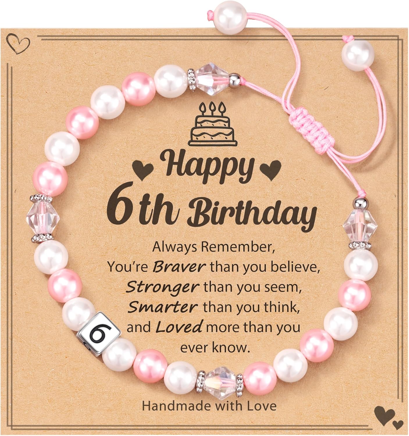HGDEER 1-8 Year Old Birthday Gifts for Girl, Adjustable Pink White Pearl Bracelet for Daughter Niece Granddaughter Girls