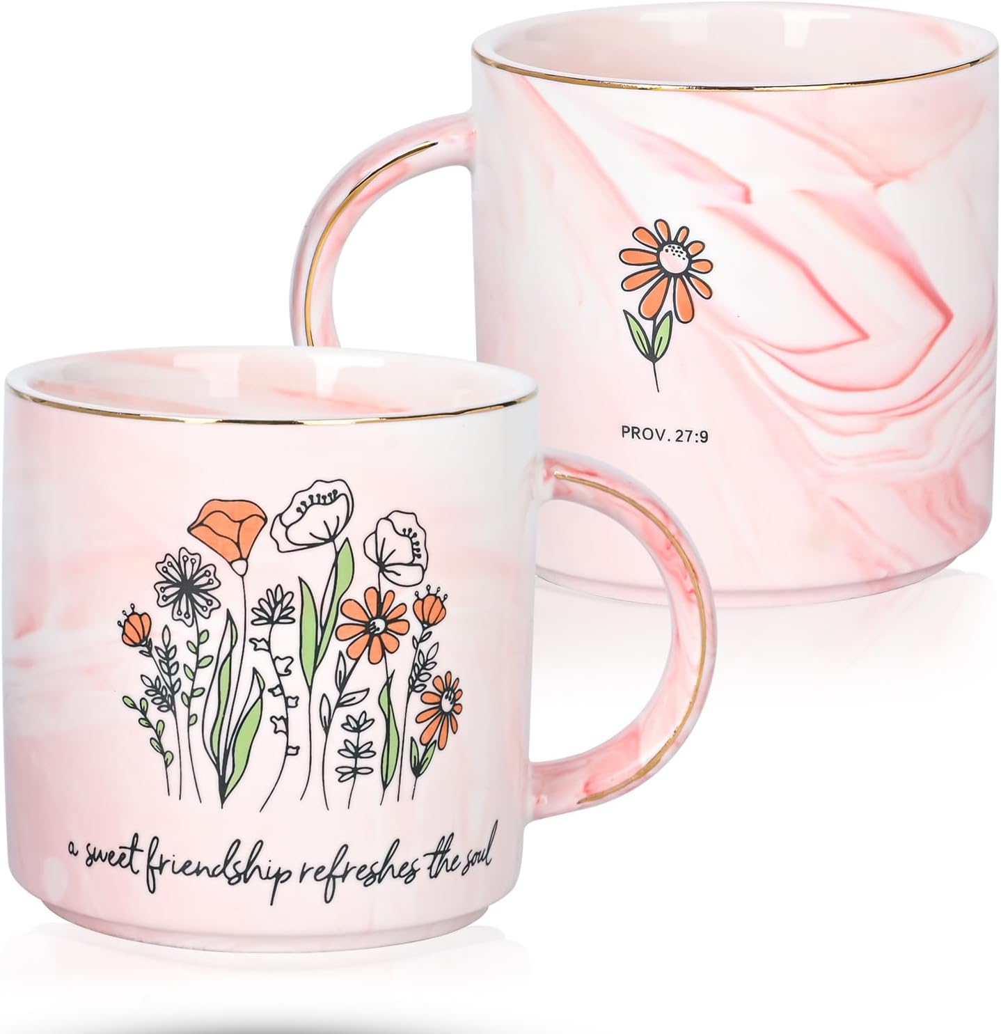 Christian Gifts for Women,Friendship Gifts for Women Friends, Floral Ceramic Mug for Best Friend,Inspirational Scripture Friends Coffee Mug 14 oz with Bible Verse:A Sweet Friendship Refreshes the Soul