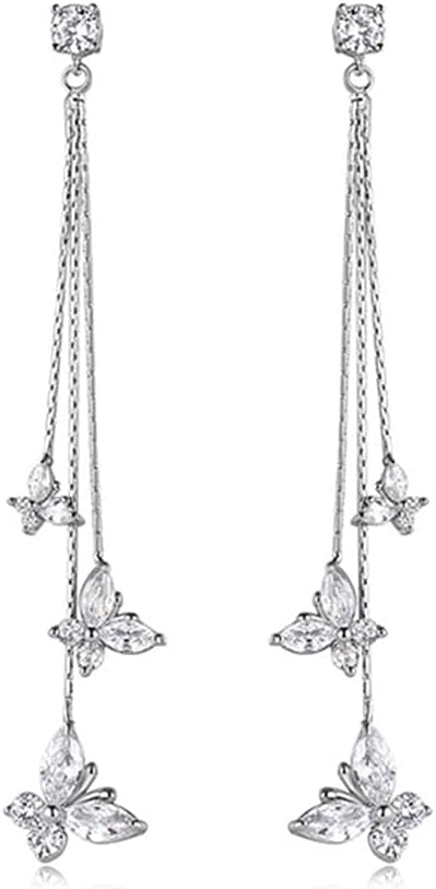 Temperament Crystal Butterfly Drop Dangle Earrings for Women Long Tassel Butterfly Stud Earrings