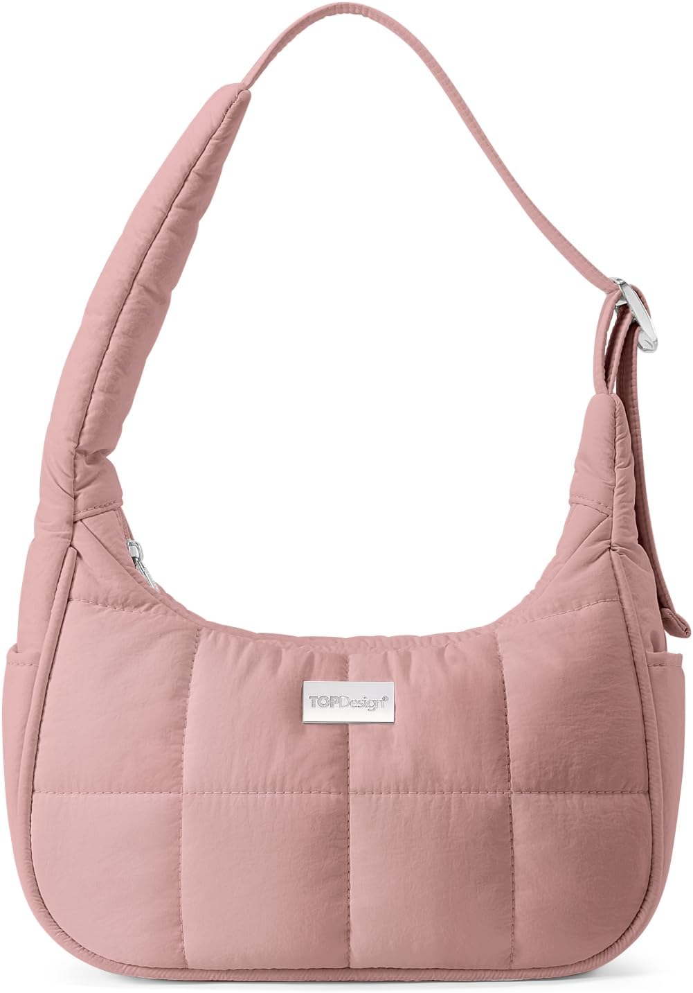 TOPDesign Quilted Puffer Shoulder Bag for Women, Trendy Lightweight Hobo Crescent Bag with Adjustable Strap