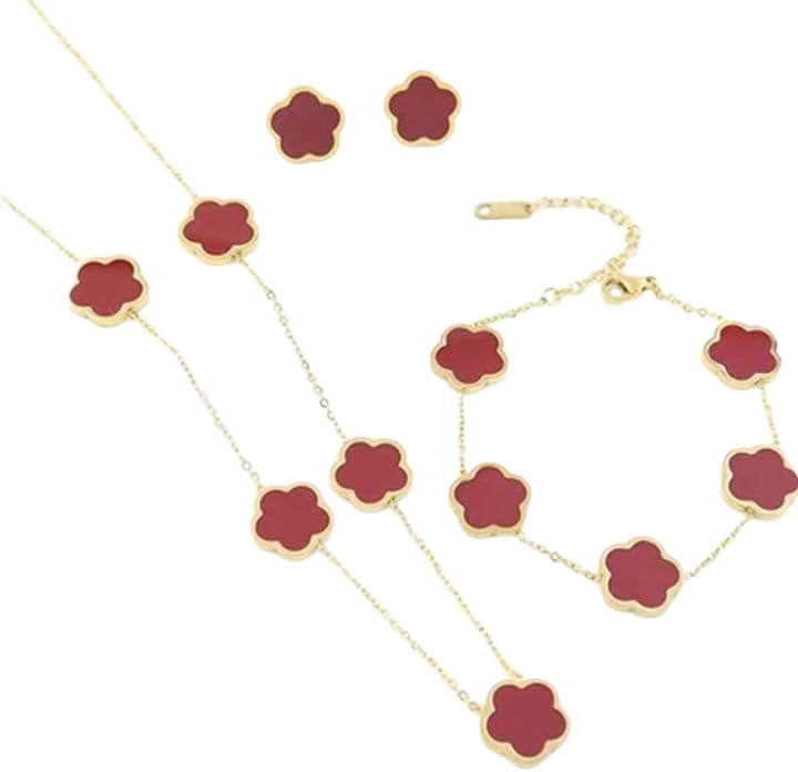 Clover Jewelry Set 18K Gold Plated Stainless Steel Necklace with Flower Design Four leaf clover for Women, Elegant Four Leaf Clover Necklace Floral Style Jewelry