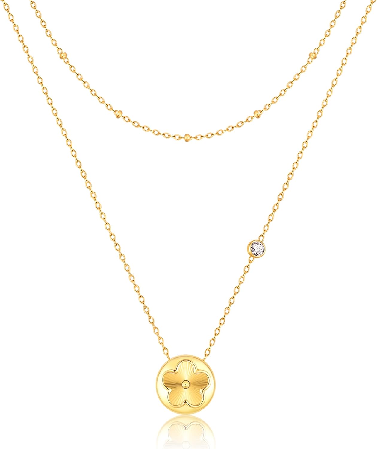 KSF Gold Floral Necklace for Women - 18K Gold Plated Flower Pendant Necklaces Stacked, Stainless Steel Non Tarnish Dainty Lucky Four Leaf Charm Necklace, Trendy Birthday Gifts for Mom Wife Girlfriend