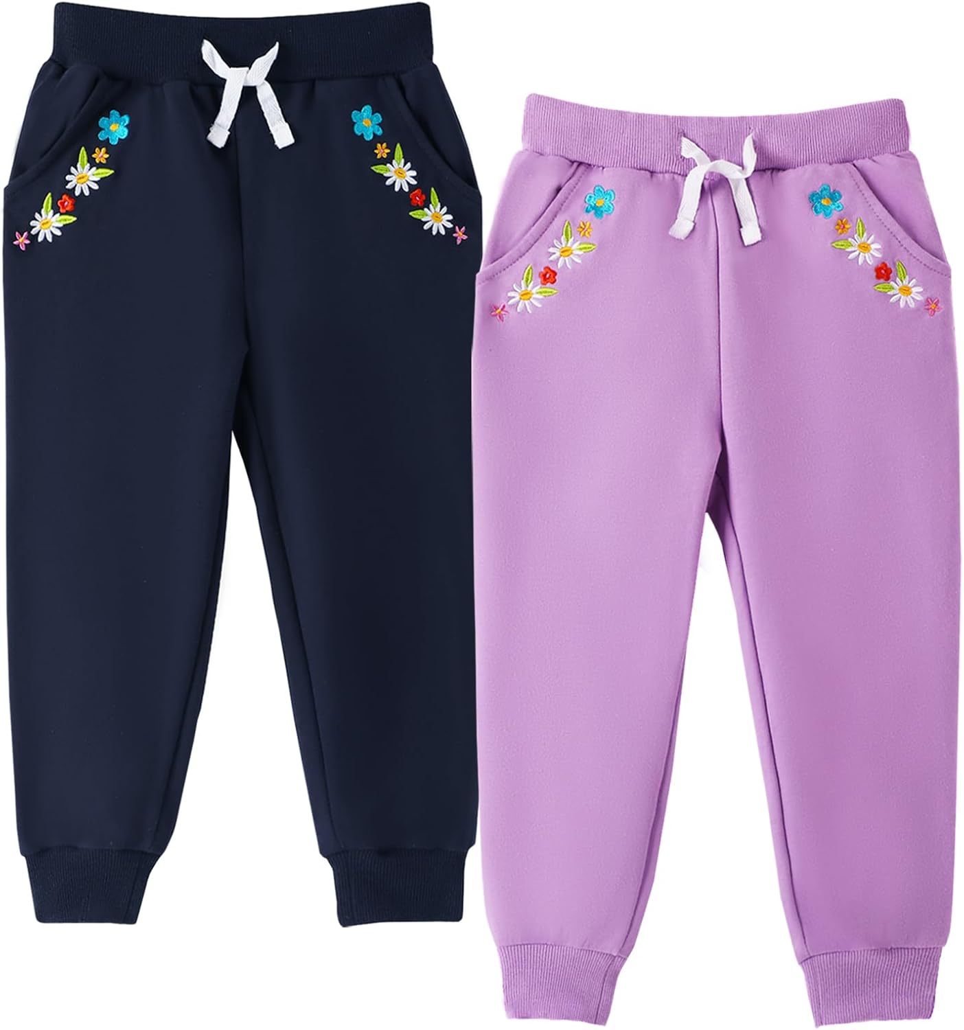HILEELANG Toddler Girls' Jogger Pants 3-Pack Pull on Cotton French Terry Solid Ruffle Pocket SweatPants12M-7Y