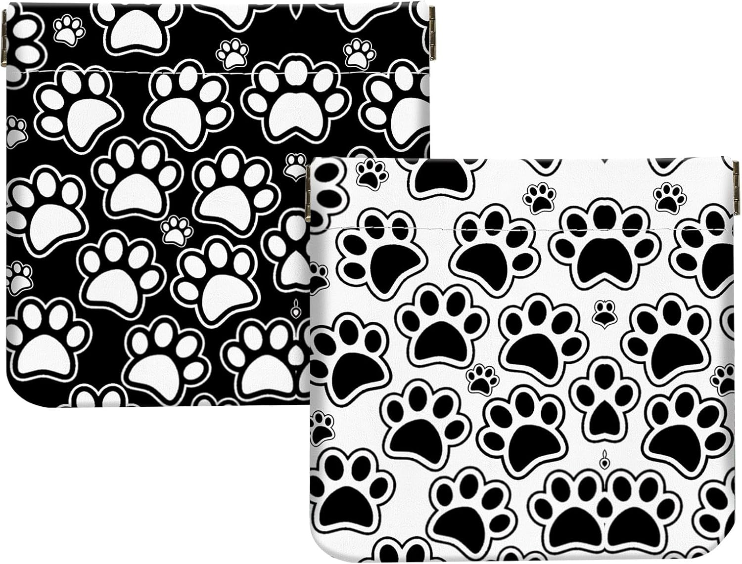 2Pcs PU Leather Small Squeeze Coin Purse Pouch Mini coin Bag Unique And Cute Wallet Cosmetic Bags Change Bag For Women Girls Men Black and white paw prints