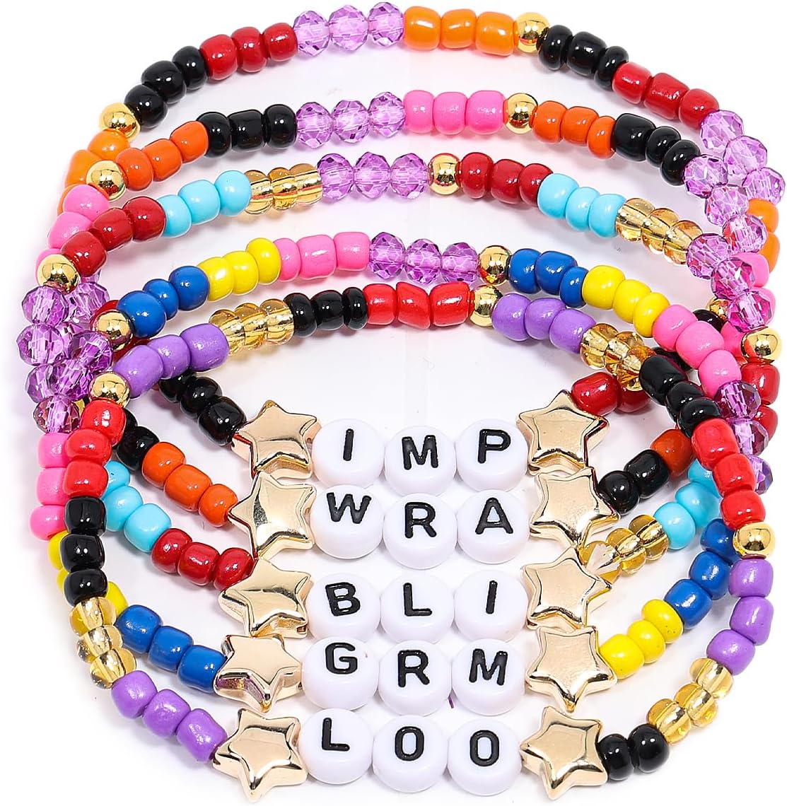 AICase for Helluva Boss Merch Gifts Toys Inspired Bracelets 5 Pcs Stackable Stretch Beaded Friendship Bracelets Stickers Poster Figure Costume Cosplay Merchandise Gifts for Fans Birthday Christmas