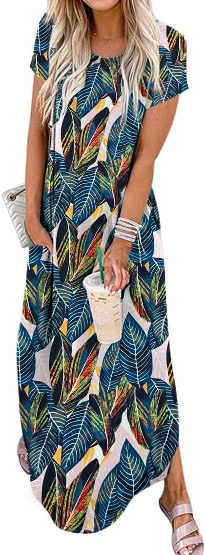 Women Summer Long Sundress Crewneck Short Sleeve Maxi Dress 2026 Casual Loose Beach Dress with Pockets