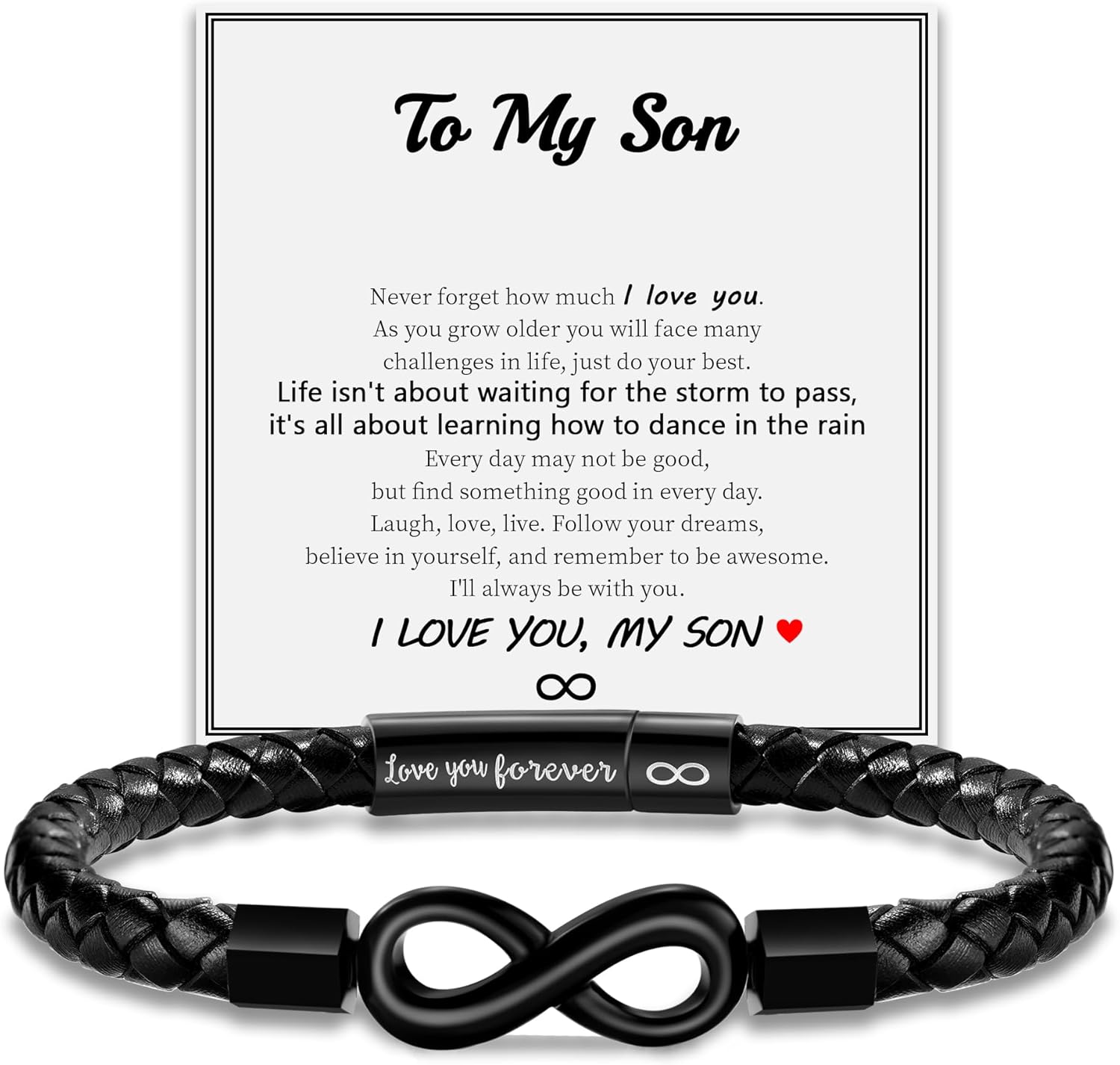 Valentines Day Gifts for Him, Leather Bracelet for Men To My Son Bracelet Fathers Day Bracelet Gifts for Dad Grandpa Love You Forever Engraved Birthday Graduation Gift Infinity Knot Jewelry