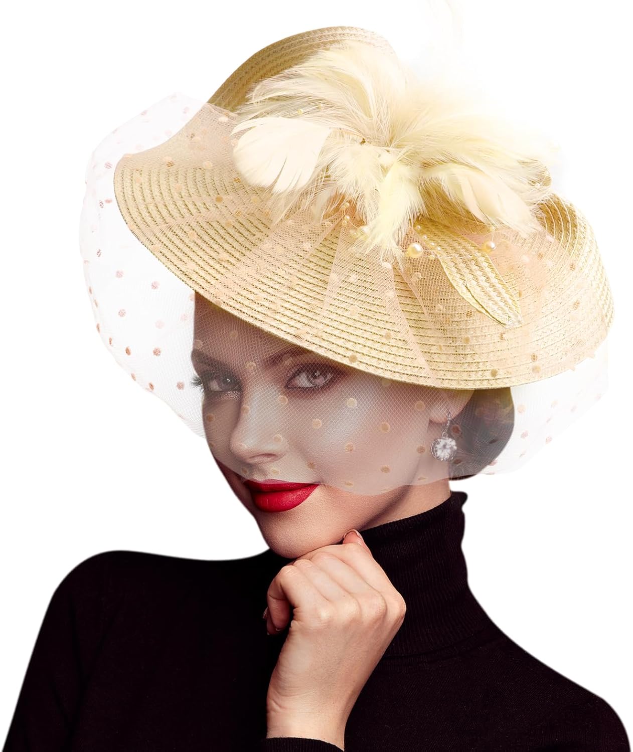 Women Fascinators Hats Flower Mesh Feathers with Headband and Clip Tea Party Headwear for Girls and Women