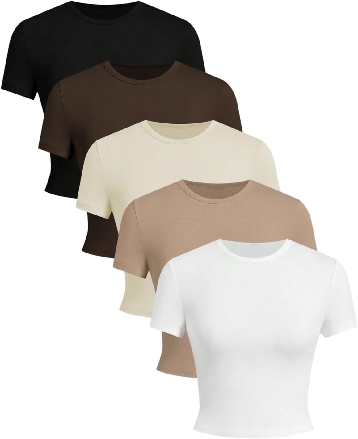 OYOANGLE Women's 5 Pack Short Sleeve Cropped T Shirt Crew Neck Slim Tee Going Out Tops