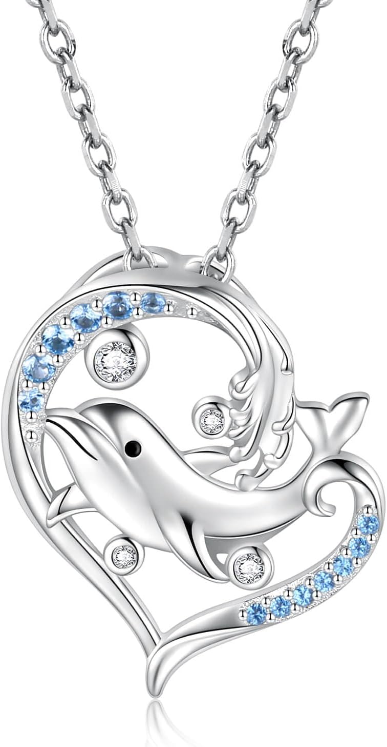 Sterling Silver Dolphin Necklace Ocean Wave Jewelry Beach Themes Dolphin Pendant Necklace Gifts for Women Animal Lovers