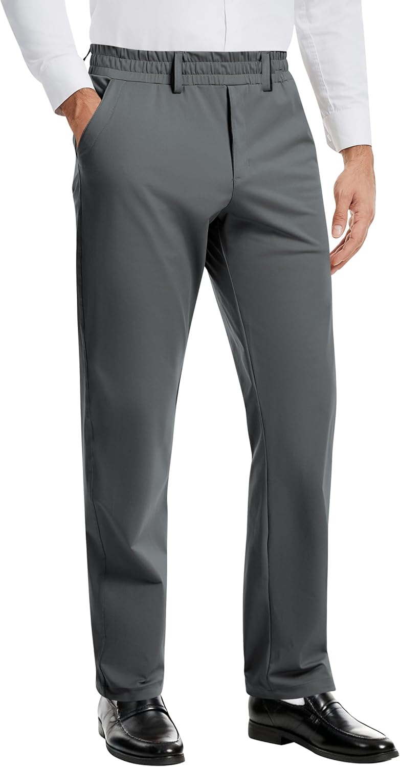Mens Elastic Waist Pants for Seniors with Magnet Button No Iron Stretch Expandable Waist Slacks for Elderly