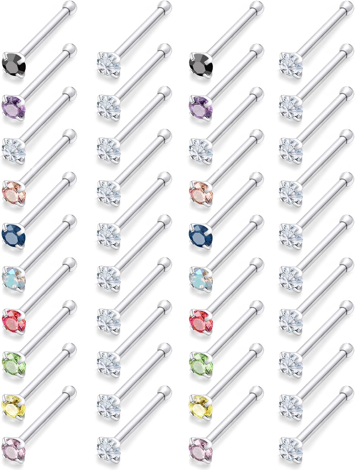 18G 20G 22G Round Cubic Zirconia Nose Rings Studs for Women Men 316L Stainless Surgical Steel Nose Ring Stud Piercing Jewelry Silver Clear CZ 1.5mm 2mm 3mm