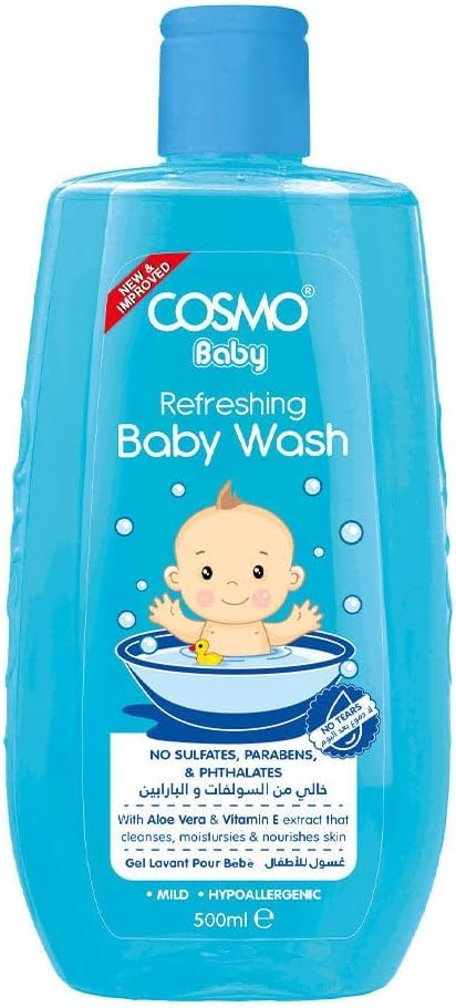Refreshing Baby Wash 500ml | 16.90 fl.oz, Body Cleanses, Moisturiser, Nourishes, Sulfates Free, Parabens Free, Phthalates Free, Daily Use, All Skin Types, New Born Baby Washes