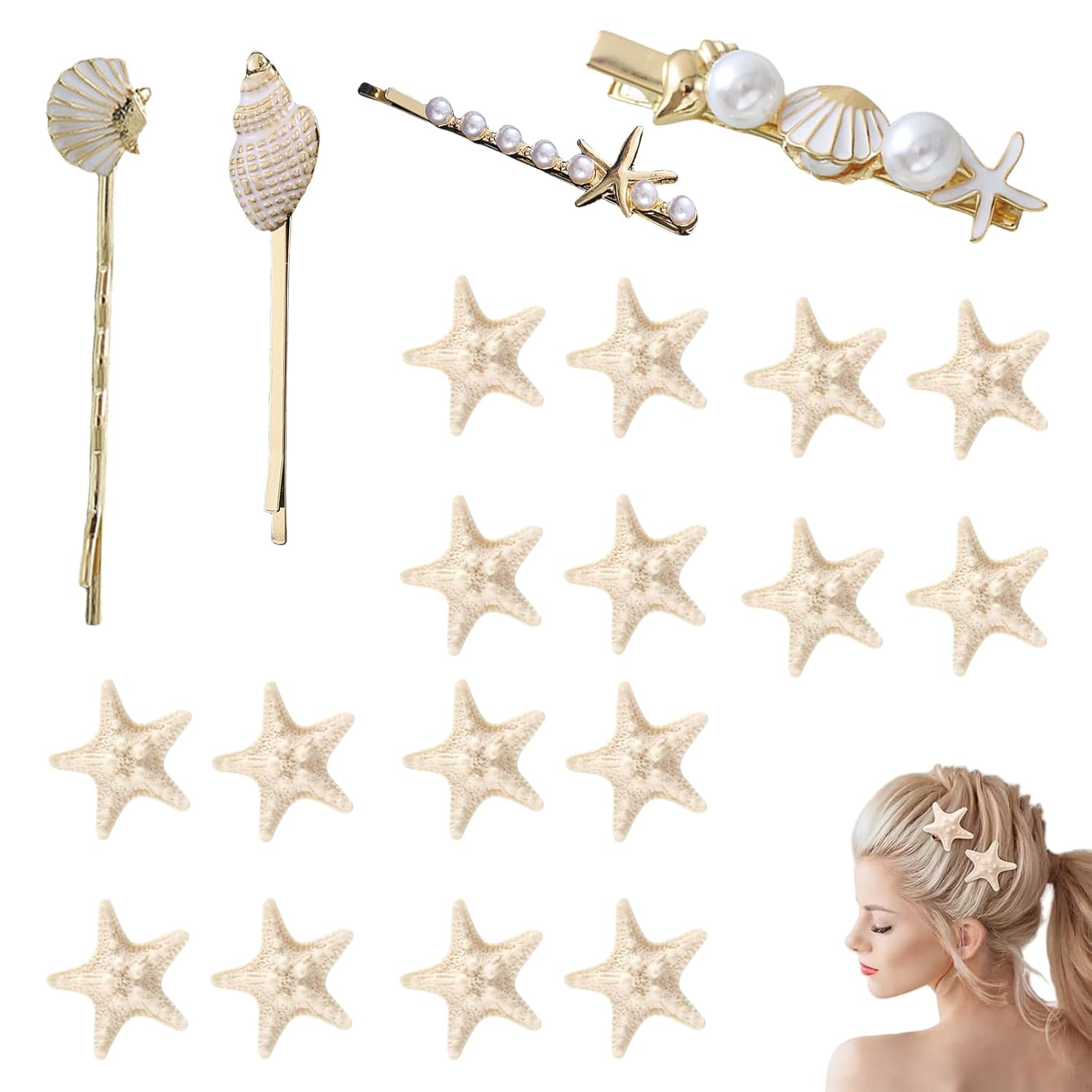 16 Pcs Shell Pearl Starfish Hair Clip Set for Women Girls, Mermaid Hair Accessories, Beach Hair Accessories For Ladies And Girls Headwear Styling Tools