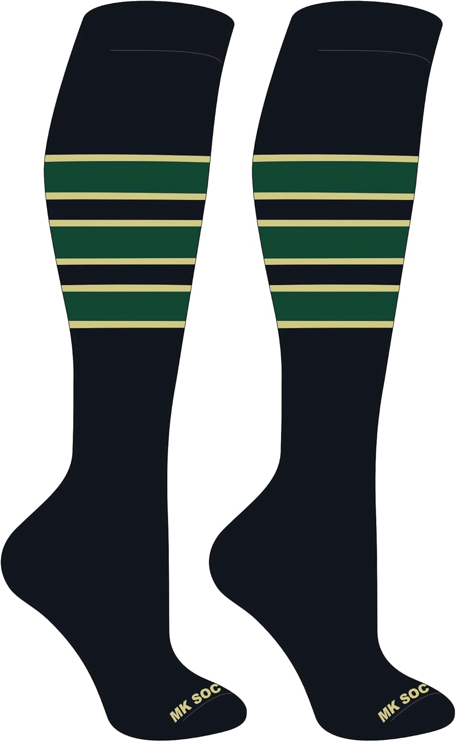 Striped Knee High Baseball, Football Socks (C) Black, Vegas Gold, Dk Green