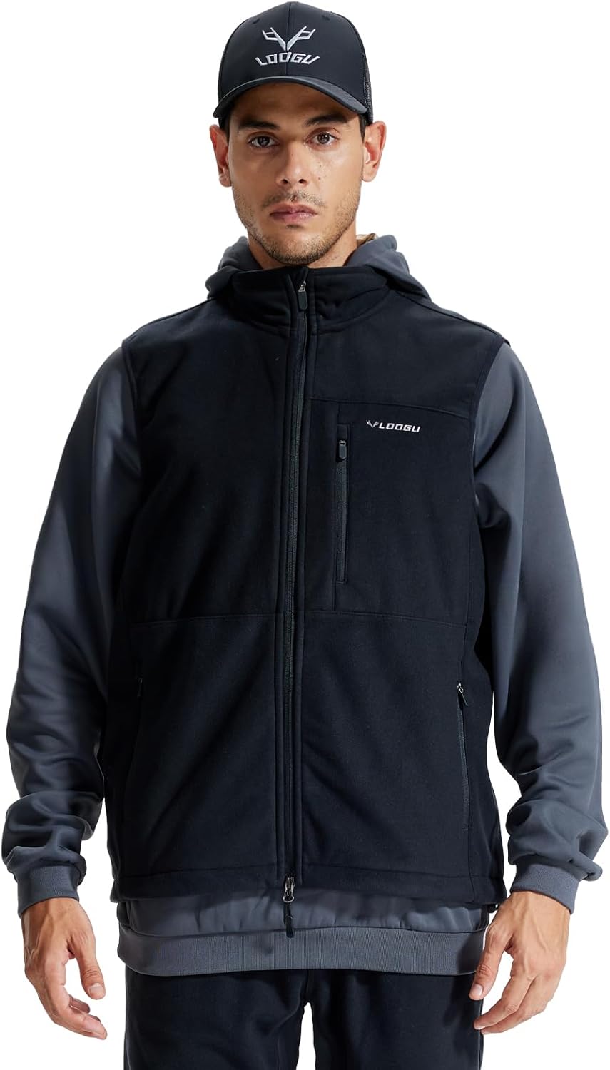 LOOGU Mens Camo Hunting Vest Fleece Lined Water Resistant Outdoor Fishing Outwear
