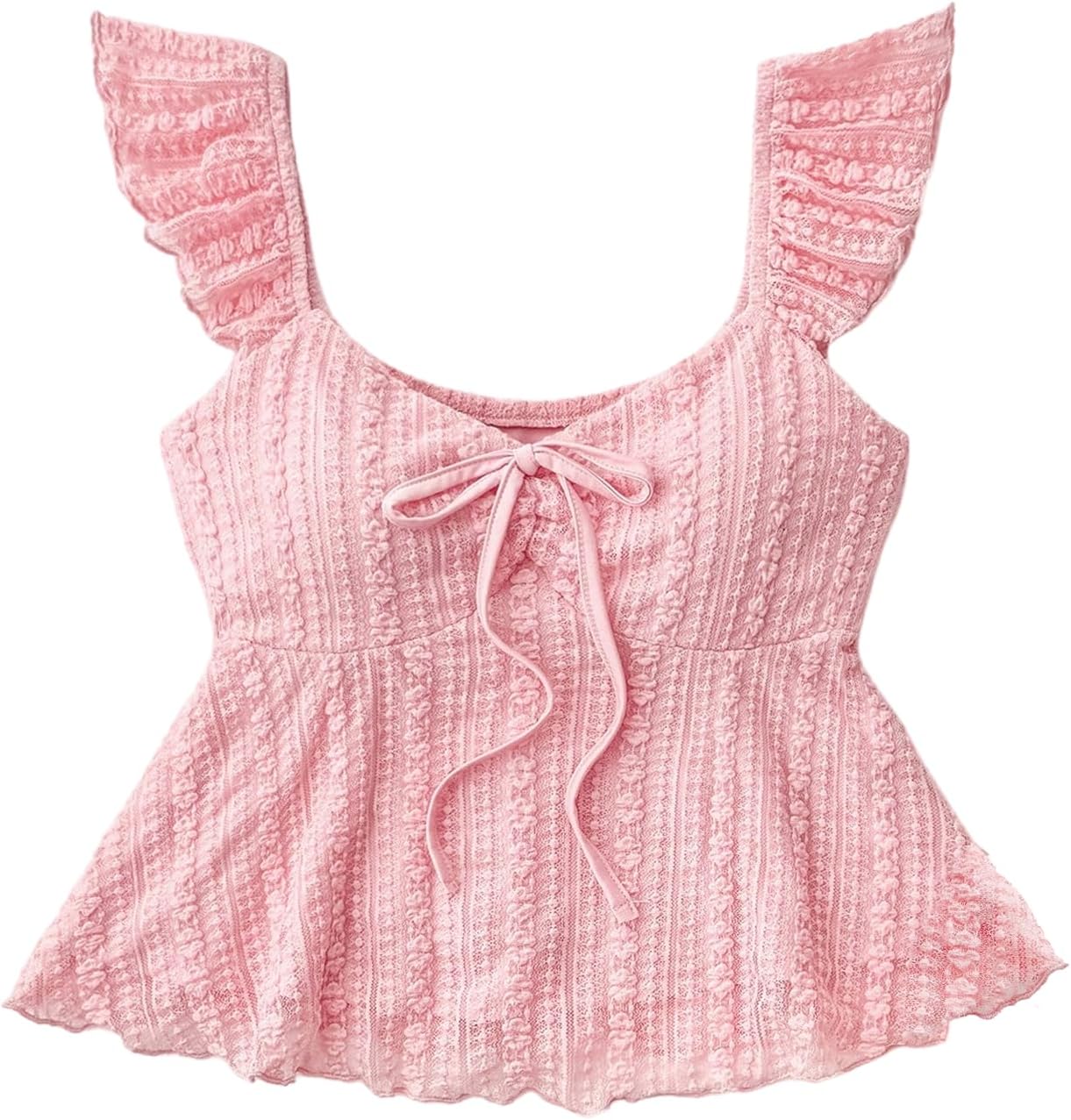 Girl's Lace Ruffle Cap Sleeve Tops Bowknot Sweetheart Neck T Shirt Babydoll Peplum Tee Top