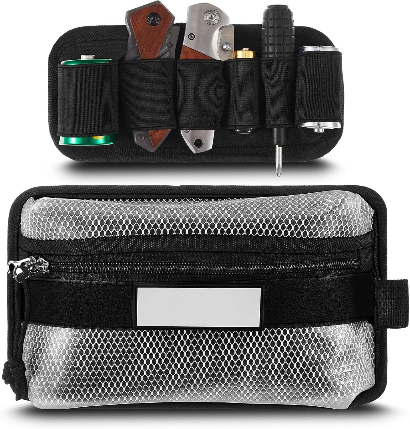 1 x Elastic EDC organizer panel, 1 x Mesh zipper pouch