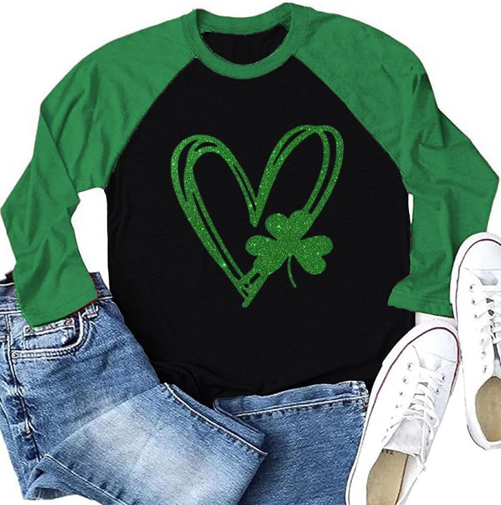 St. Patrick's Day Shirts for Women Raglan Long Sleeve Lucky Shamrock Graphic Irish Shirts Spring Casual Tops