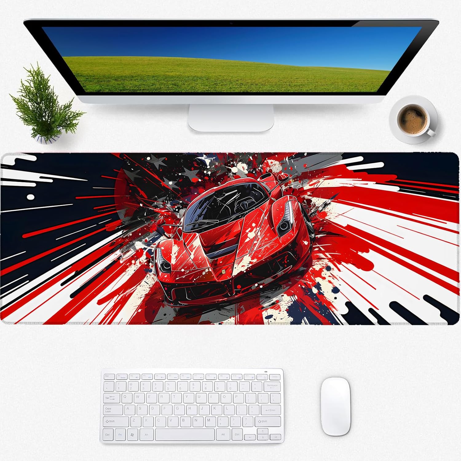 Red Sports Car Gaming Mouse Pad, Desk Mat, Non-Slip Rubber Base Cool Aesthetic MousePads for Computer Laptop Keyboard Office School Home Desktop Accessories Decor 31.5" x 11.8"