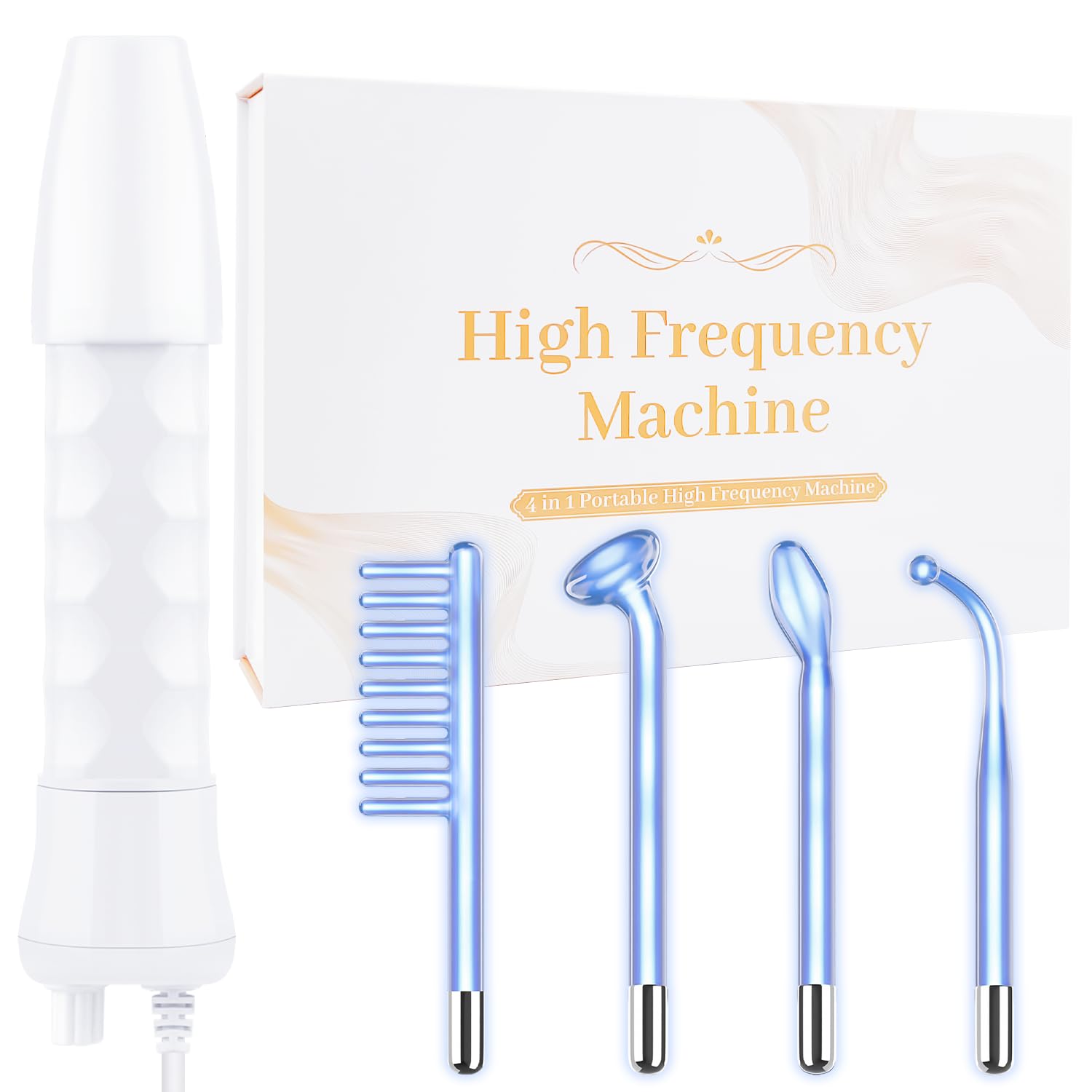 - What's in the Box: The portable high frequency face wand includes 1 pcs handle and 4 pcs glass tubes. 1 Mushroom tube, 1 Tongue tube, 1 Bend tube, 1 Tube and 1 pcs instruction. The small and beautiful design is so portable that you can take it with you wherever you go. It is especially a good companion in travel