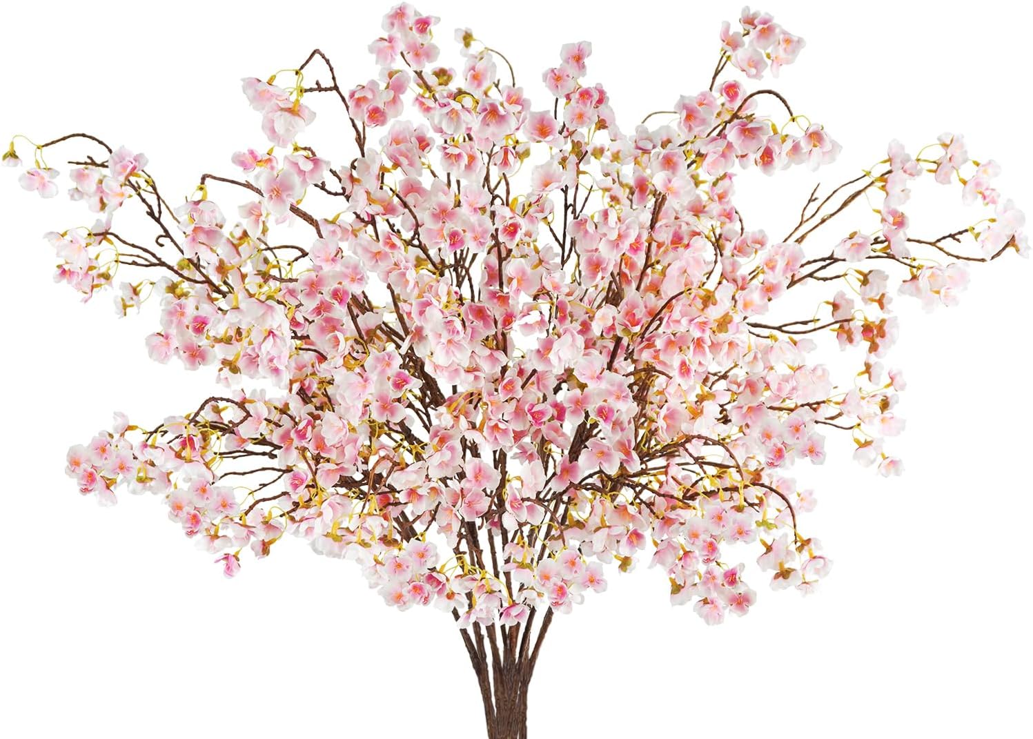 - Realistic Apearrance: This faux cherry blossom stems has vibrant color and lifelike features. It gives your home a feeling of vivid, natural and elegant. Every petal is naturally curled and manually installed, you can feel the rich layers and softness of the silk