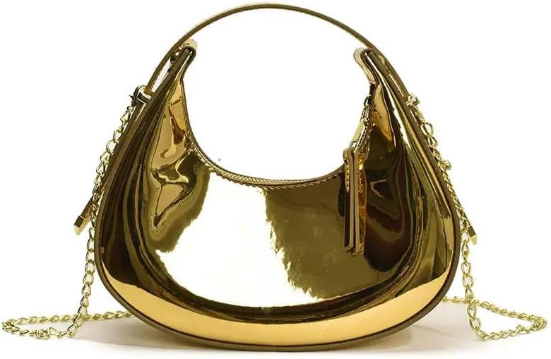 Cute Metallic Purses for Women Stylish Crescent Shoulder Bag Small Gold Crossbody Purse Patent Underarm Moon Bag