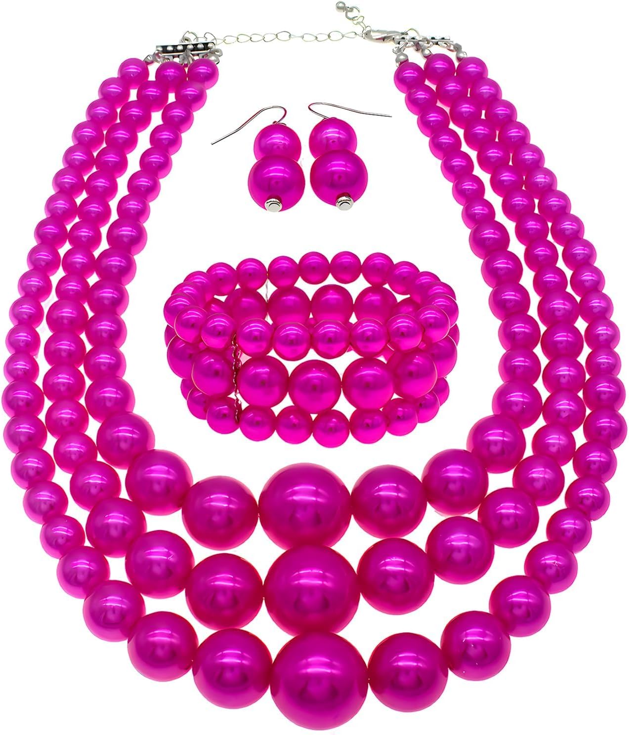fuchsia pearl necklace set