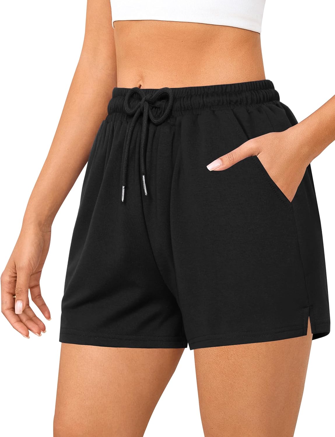 Quenteen Women's 4" Comfy Drawstring Elastic Waist Casual Cotton Sweat Shorts Workout Athletic Shorts with Pockets