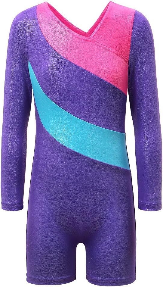 Belovance Gymnastics Leotards for Girls Toddler Tumbling Outfits Kids Long Sleeves Biketard Sparkly Diamond Purple Hotpink