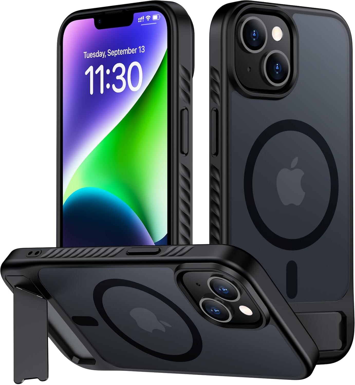 ![for iPhone 14 Plus Case with Kickstand,[Compatible with Magsafe] Slim Translucent Matte Military-Grade Protection & Anti-Yellowing,Magnetic Phone Case for iPhone 14 Plus,Black - Image 3](https://m.media-amazon.com/images/I/713x-27GAGL._AC_SL1500_.jpg)