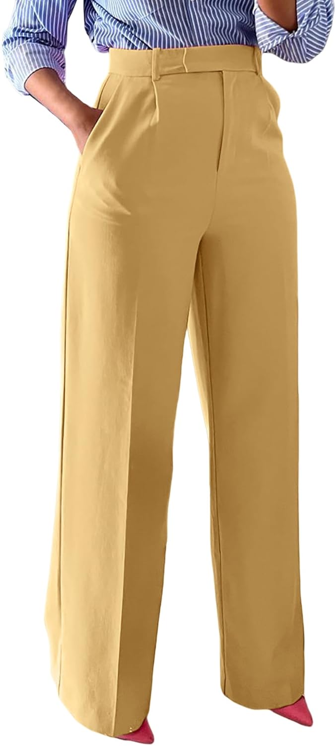 Unybwonn Women Wide Leg Dress Pants High Waisted Straight Leg Business Slacks Work Pants Casual Button Down Trousers