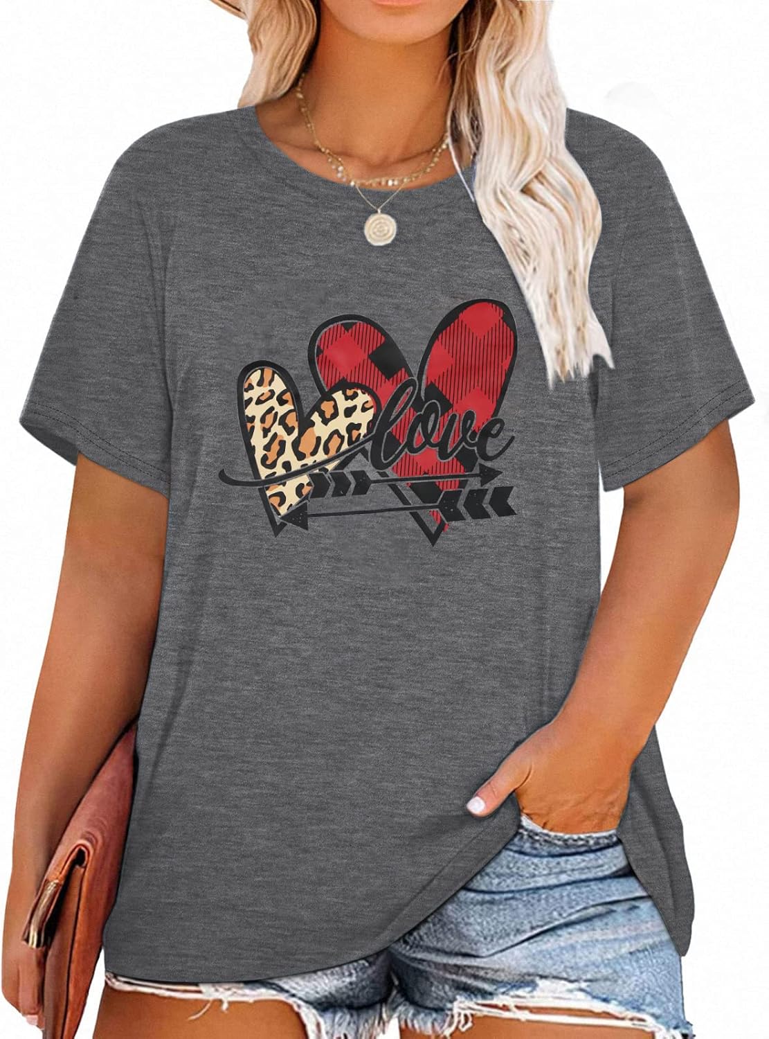 HDLTE Womens Plus Size Valentines Shirts Love Heart Graphic Print Short Sleeve Tops Casual Tees Blouse