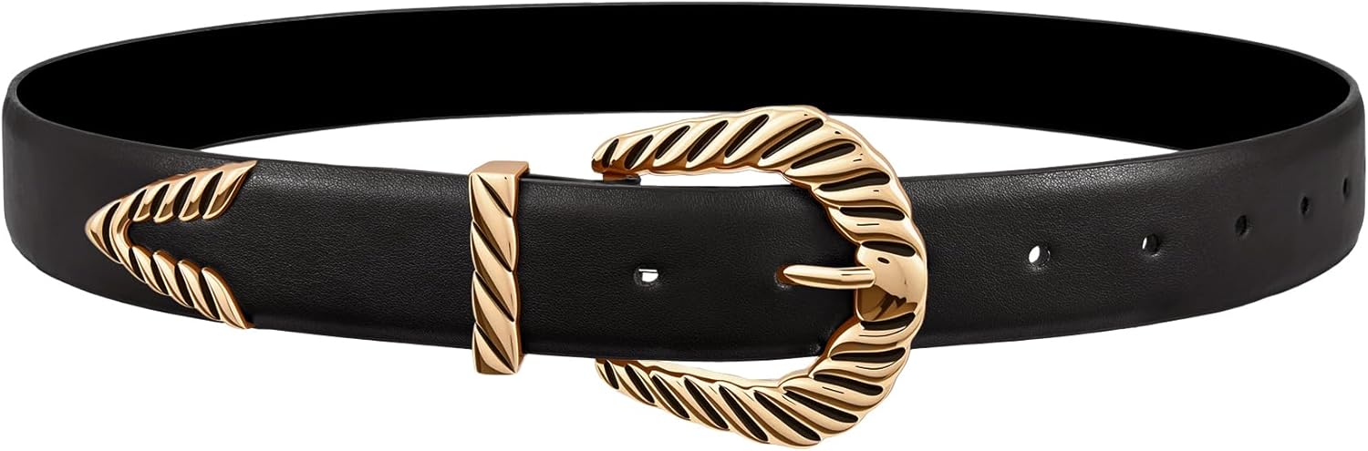 XZQTIVE Western Belt for Women, Modern Rodeo Cowboy Cowgirl Belts, Country Leather Belt Gold Buckle