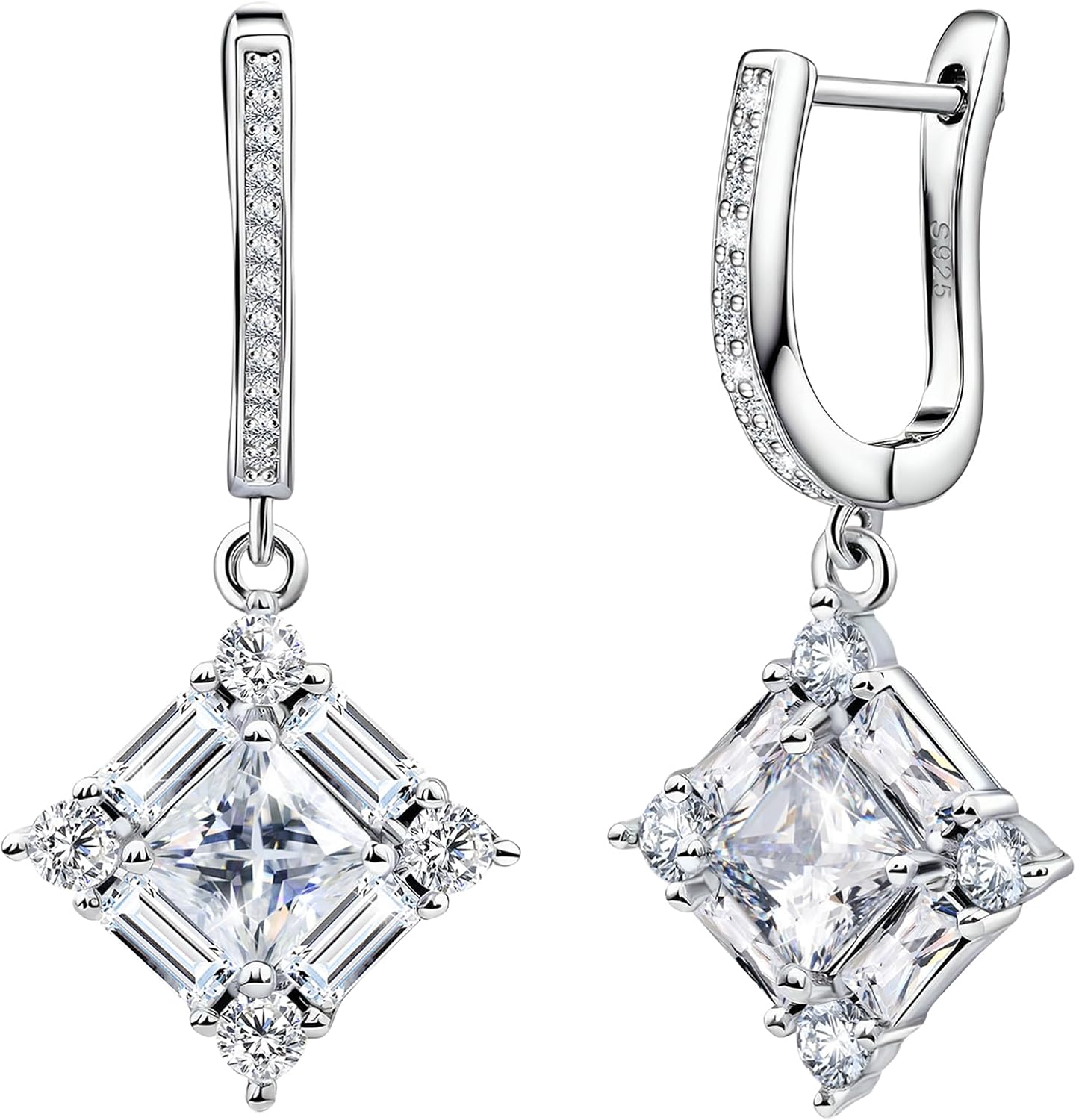Dangle Hoop Earrings for Women Sterling Silver Cubic Zirconia Square Hoop Earrings with Cz Charm Sparkling Crystal Huggie Jewelry for Women Mother's Day Gifts for Mom Daughter Bridal Wedding