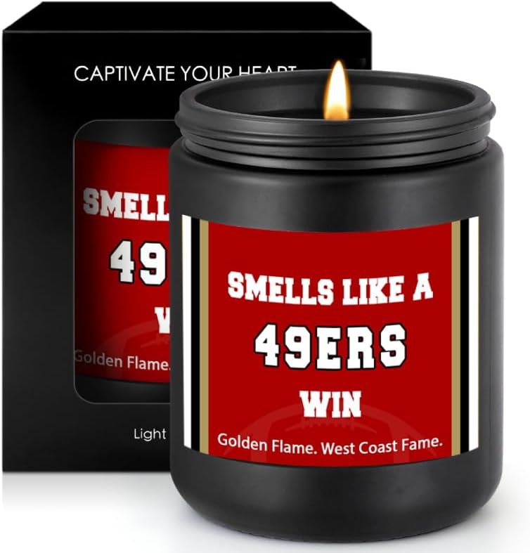 Smells Like A 49ers Win Scented Candle Football Themed Merch Fan Shop Men Women Sport Stuff Gear Decor Accessories Men Bf Boyfriend Naughty Weird Novelty Cool Christmas Xmas Special Present Funny Gift