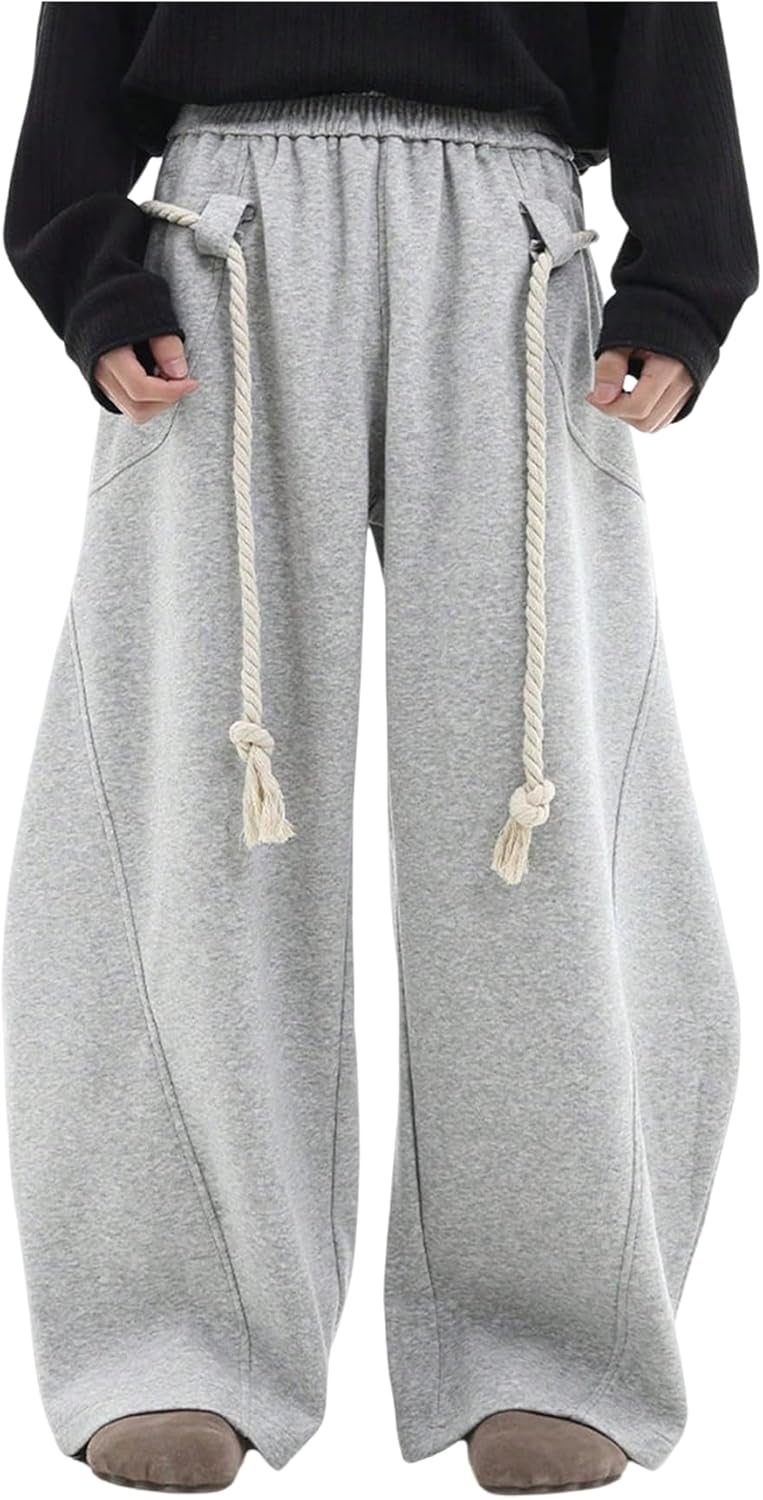 Verdusa Men's Baggy Sweatpants Y2K Athletic Wide Leg Pants Elastic Waist Barrel Trousers with Pockets
