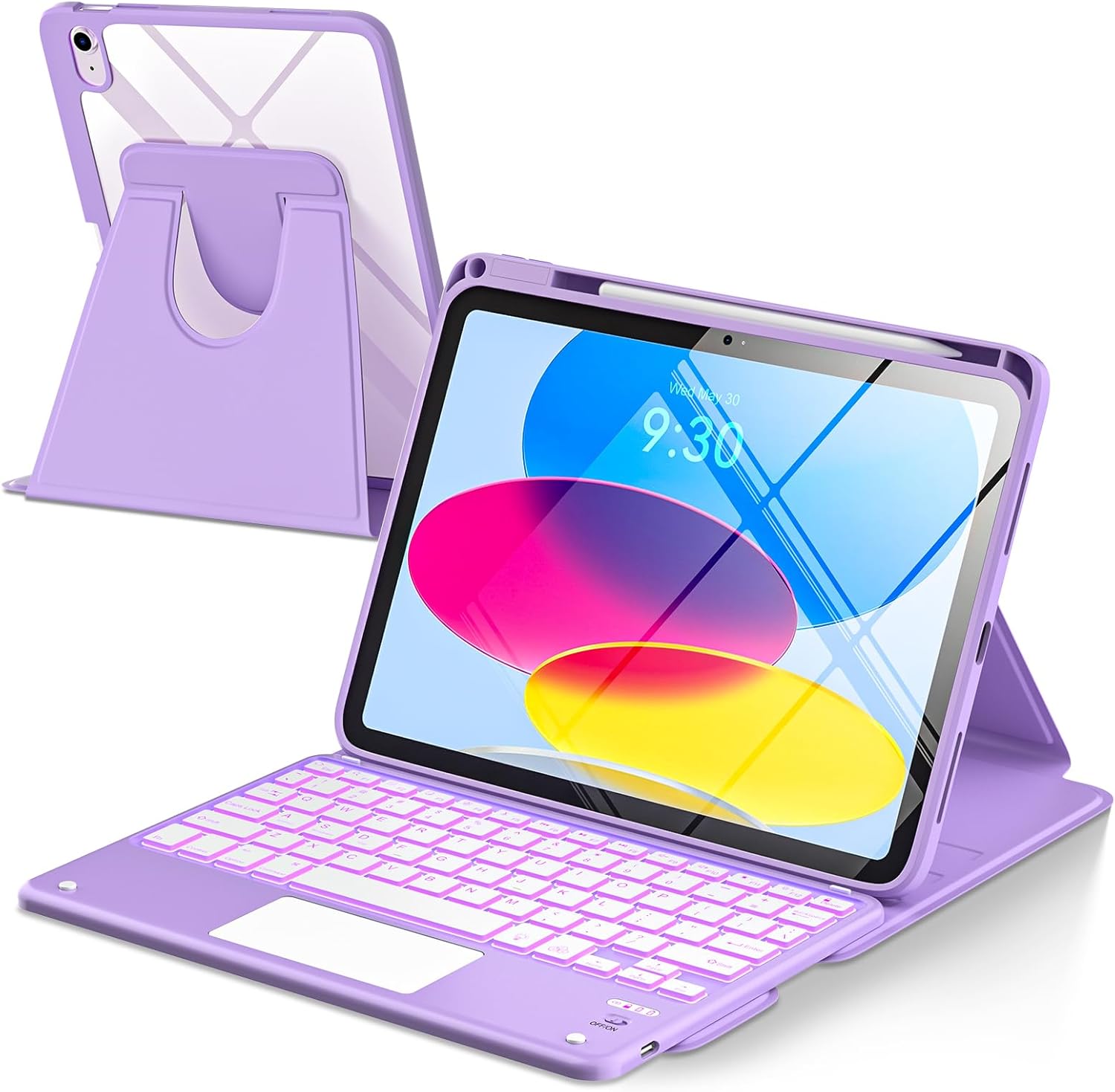 TaIYanG Touchpad for iPad A16 11th/10th Generation Case with Keyboard, 7 Color Backlit 360 Rotation Cover with Pencil Holder,Detachable Keyboard for iPad 11 inch 2025/10th Gen 10.9'' 2022 (Purple)