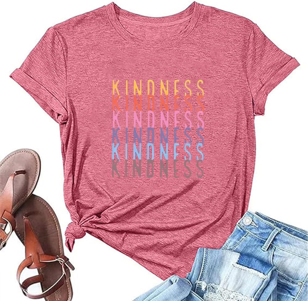 Kindness Shirts for Women Casual Graphic Tees Funny Inspirational T Shirt Teacher Tees Tops