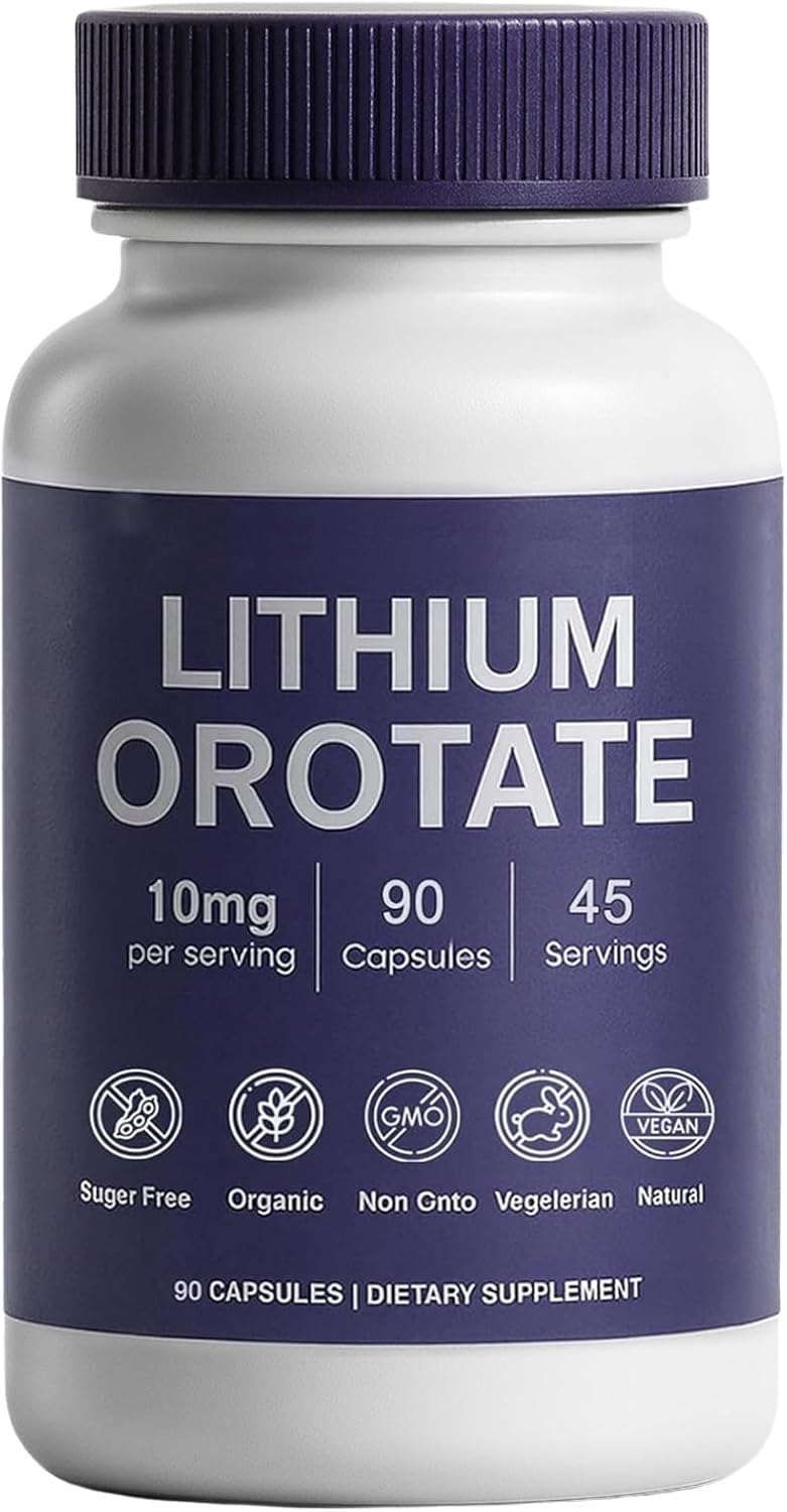 Lithium Orotate 10mg, Anxiety, Stress & Mood Support Lithium Orotate Capsules Supplement, Vegan & Non-GMO, Gluten-Free, 90 Capsules (1)