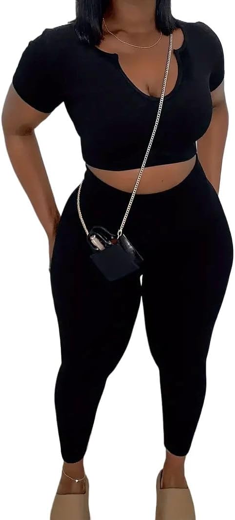 Nimsruc 2 Piece Sets For Women Sexy Casual Workout Crop Short Sleeve Long pants Leggings Sets Summer Active Wear