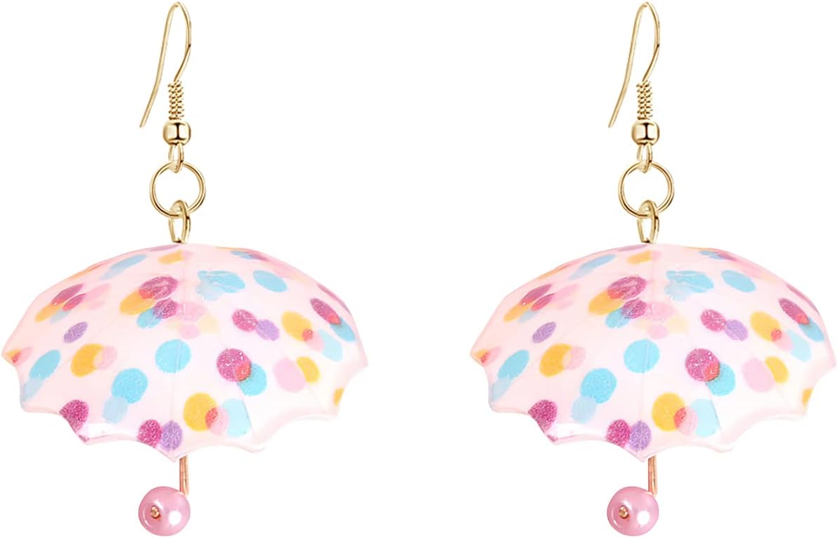 Funny Cute Resin Rainbow Umbrella Drop Dangle Earrings Personality Creative Mini Umbrella Weather Earrings Costume Holiday Jewelry for Womens Gifts