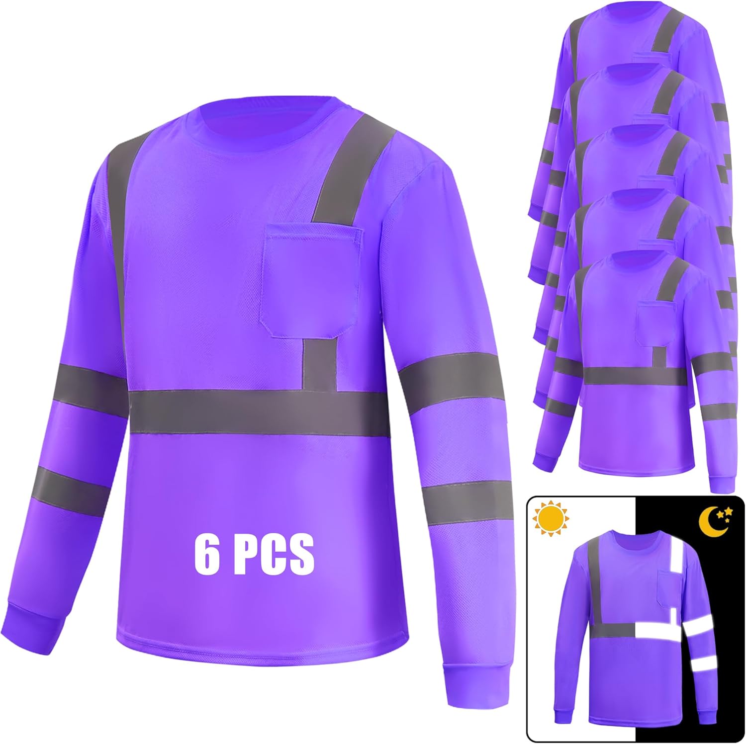 6 Pack Hi Vis Long Sleeve Safety Shirts Reflective DryBlend Shirts for Railway Colleague Moisture Wicking Multipack